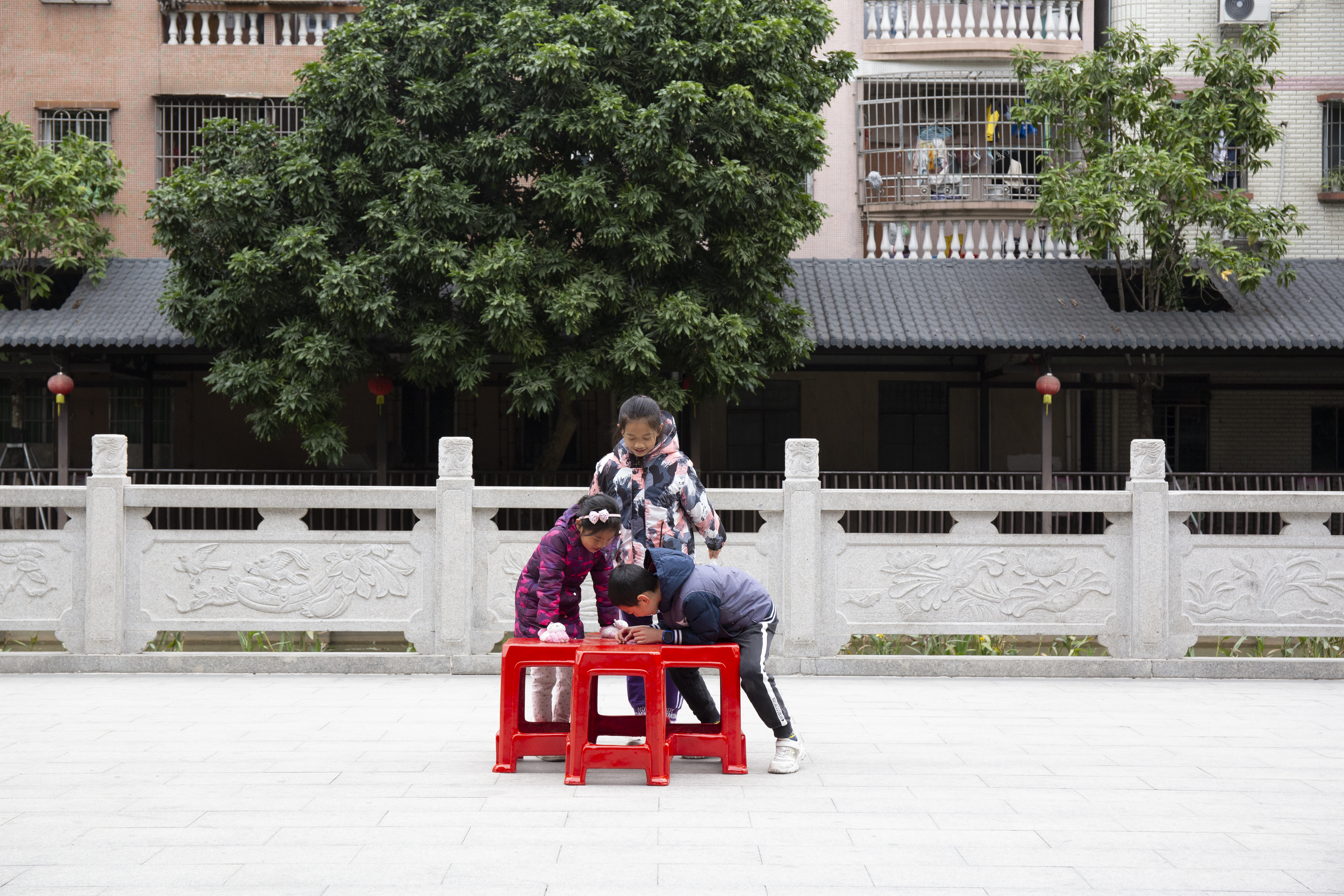 THIS IS A COMMUNITY ART FESTIVAL THAT DISCUSSES THE PHYSICAL OR EMOTIONAL DISTANCE BETWEEN PEOPLE IN EPIDEMICS. THE RED PLASTIC STOOL IS A TYPICAL SYMBOL OF MOST CHINESE URBAN VILLAGES AND SERVES AS A MEDIUM TO CONNECT PEOPLE. THEREFORE, IT WAS USED AS A CARRIER, BREAKING AWAY FROM ITS INHERENT FORM TO CREATE A VARIETY OF ‘STOOLS' THAT ATTEMPT TO CREATE A SENSE OF 'DISTANCE' AND ‘CONNECTION' WITHIN THE SHAPE.